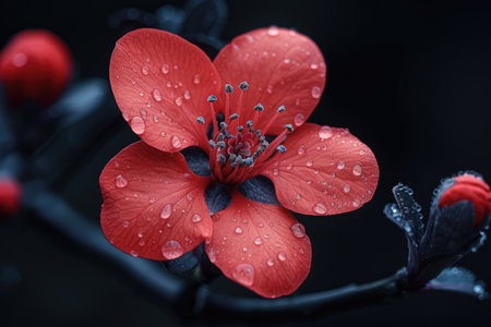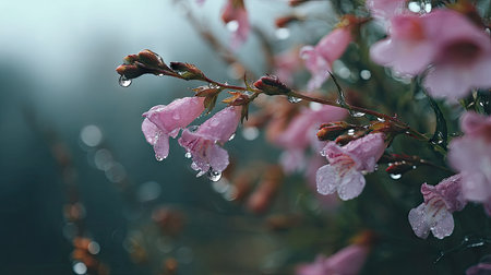 Pink flowers blooming on a branch against a dark blue background create a vibrant and captivating scene. Ai generated image