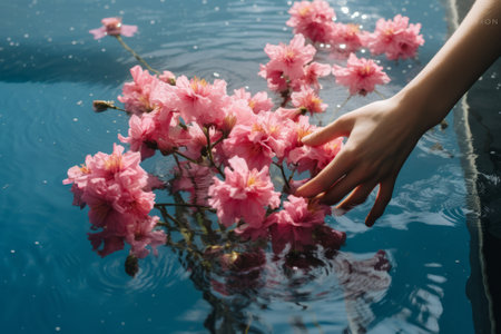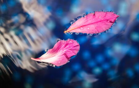 Petals gently floating on a serene water surface creating a peaceful atmosphere