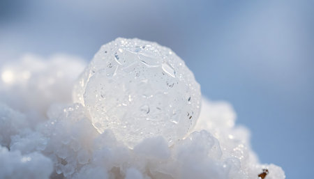 close up of a snowball with water droplets on it
