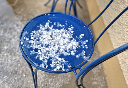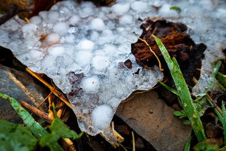 thunderstorm of large hail destroyed the grass hailstones in garden home