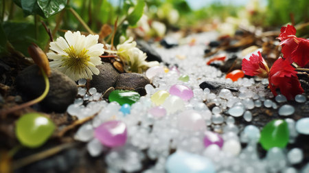 hailstones converge in a breathtaking display of natural beauty, as fresh green, blooming, colorful, and white hailstones merge in perfect harmony, captured through the lens of a professional photographer on unsplash, showcasing the awe-inspiring wonders of the natural world. ai generated