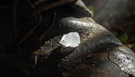 In the depths of an ancient forest, a knight in dark armor discovers a rare, uncut diamond.
