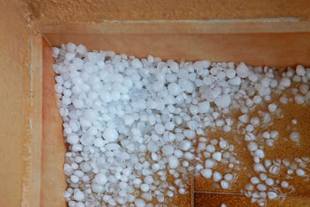 Close up of hail lying on the ground after the hailstorm