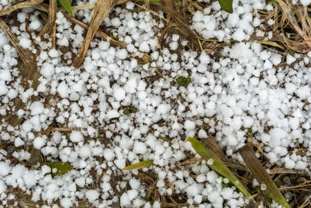 thunderstorm of large hail destroyed the grass hailstones in garden home