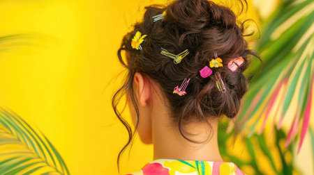 A close-up of a girl hair styled with playful and colorful hair clips, capturing the fun and creativity they add to her hairstyle in a bright, cheerful setting.