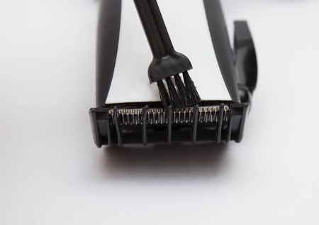 Man cleaning black hair clippers white