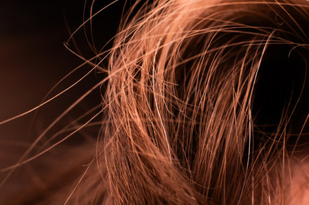 Close up of frayed hair tips revealing split ends and highlighting various shades of color against a soft background, perfect for beauty exploration.