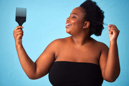 I love my natural hair, its a part of who I am. Studio shot of a beautiful woman holding up an afro comb.
