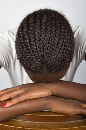 Young african woman hairstyle, Zimbabwe, no makeup, sadness