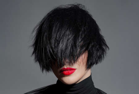 Wig and scissors - bright black wig - hairstyle background