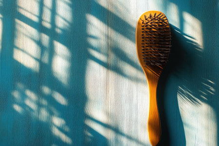 Detailed Hair Brush Against a Blue Background with Sunlit Shadows