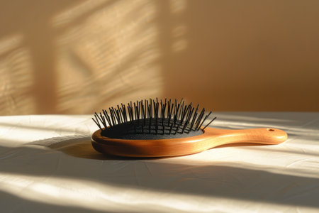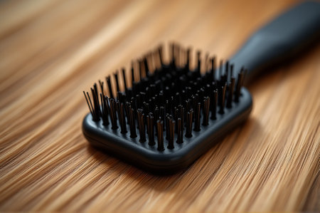 Close-Up of Hairbrush with Lost Black Hair in Natural Light