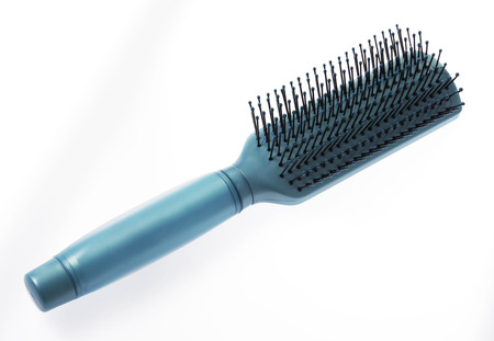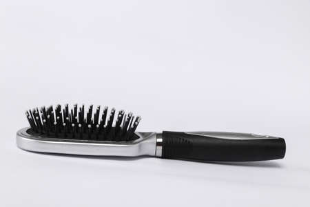 Minimalist photograph of a woman's hair brush.The photo is taken in the studio on a white background and has space to put any text.
