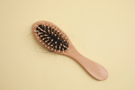Comb with hair loss, health problem, issue of aging, alopecia areata due to stress or infection, hairbrush