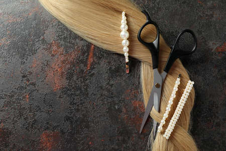 Hair strand with clasp-pins on color background