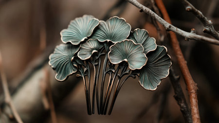 A stunning close-up of delicate green ginkgo leaves gracefully arranged amidst natural elements. The intricate textures and vibrant hues highlight the beauty of nature.