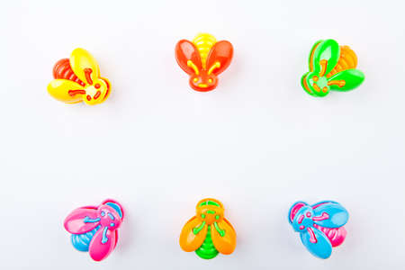 group of plastic hair clips on white background