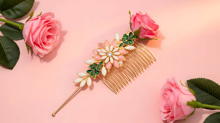 Elegant floral hair comb with pink roses
