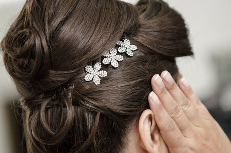 Woman with beautiful hair clip and jewelries, close up