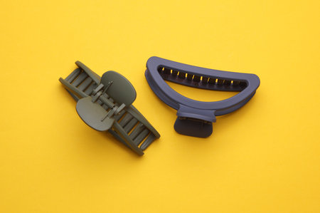 Plastic hair clips isolated on yellow background