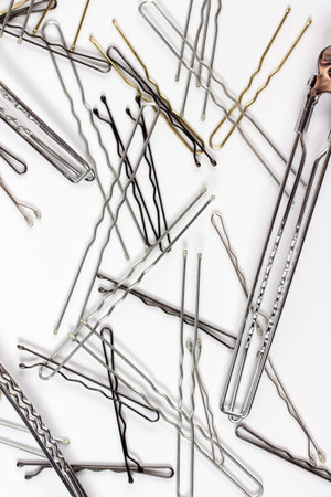 Many hairpins or hairclips as a background. Selective focus image.