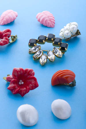 object on blue - costume jewel brooch and earring