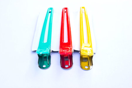 group of plastic hair clips on white background