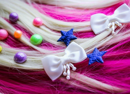 Hair strand with clasp-pins on color background