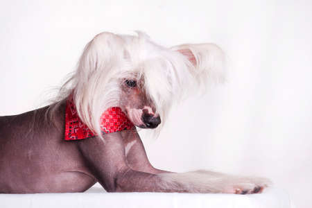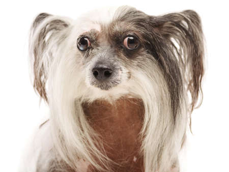 Portrait of a Chinese Crested Dog, studio shot on white background