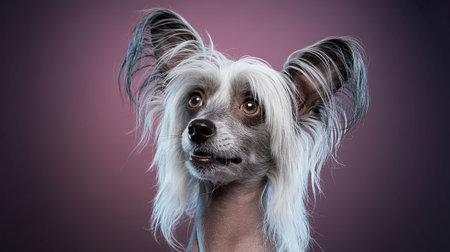 Portrait of Chinese Crested hairless Dog with copy space for text