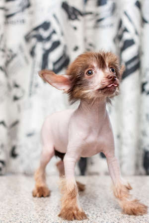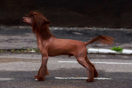 Chinese Crested Dog Breed. Male dog. Toy dog, fine-boned, elegant and graceful.