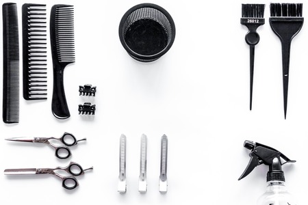 Hair stylist woman hands hold scissors and comb close-up. Hairdressing and hair care