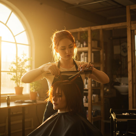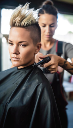 A talented stylist works on a clients hair in a modern beauty salon with trendy decor.