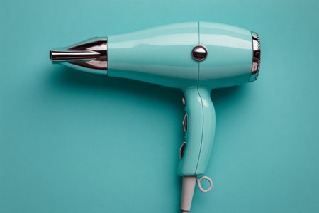 A sleek hair dryer in a soft mint color showcases modern design. Perfect for beauty enthusiasts, salons, or stylish interiors, blending functionality and elegance.