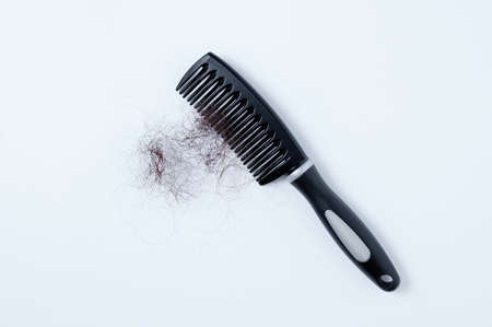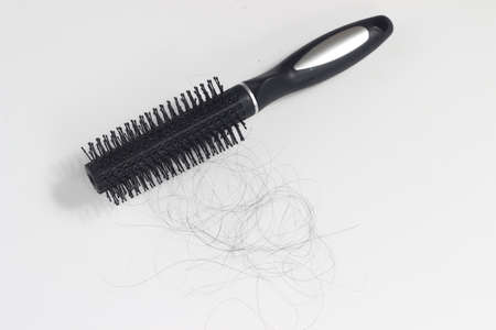 Photo Hair fall at white Black plastick comb, White Background