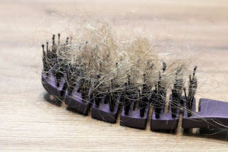 A lot of hair on the comb, hair loss, close-up.