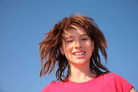 happy young girl with blowing hairs