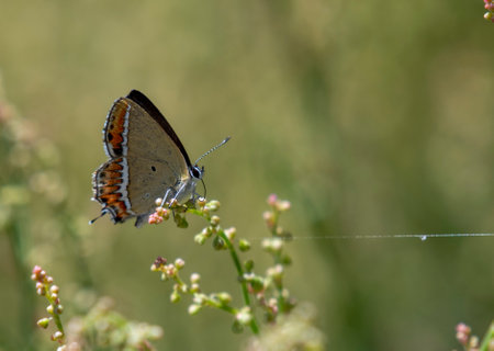 Butterfly on a flower in nature. Macro. Shallow DOF
