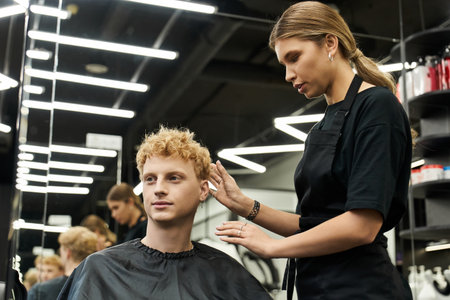 A talented stylist works on a clients hair in a modern beauty salon with trendy decor.