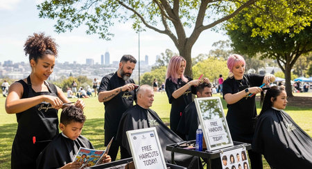 Unidentified people getting haircut by hairdresser