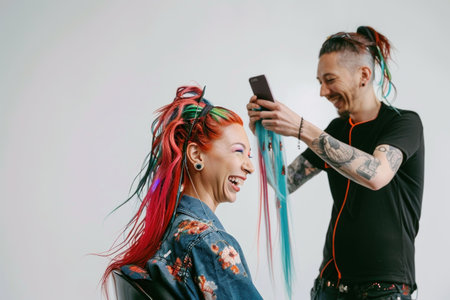 Vibrant hair coloring artistic barber work colorful setting