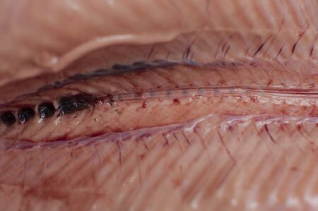 Fish, known as Ukleika (Alburnus alburnus), salted dries in rows. Pattern fish
