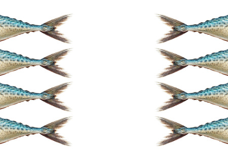 Background of healthy food with raw fresh blue fish. Soft focus, Free copy space.