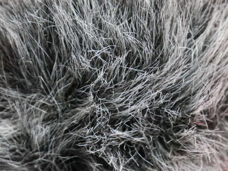 Close-up macro photography of gray faux fur. Selective shot.