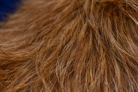 Red or brown dog hair fur, extreme close-up macro view, abstract hair background