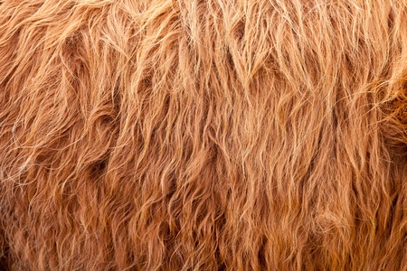 A frame filling shot of some brown highland cow hair.