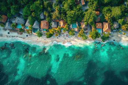 the essence of a tropical paradise with an aerial view abundant in lush palms