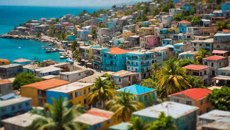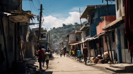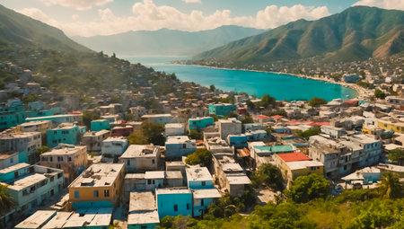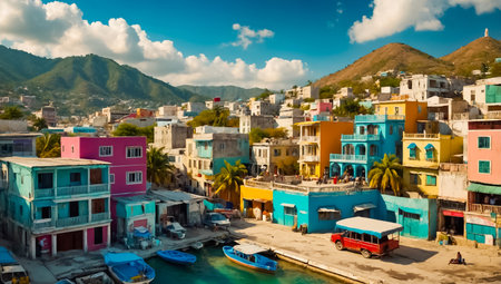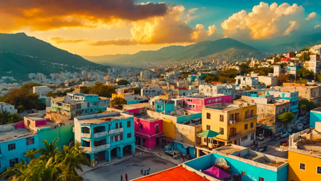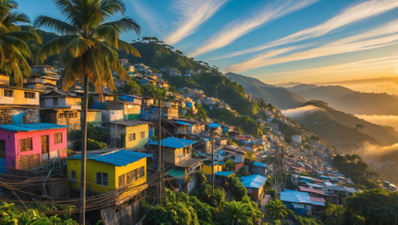 Vibrant hillside community at sunset capturing daily life in a tropical neighborhood