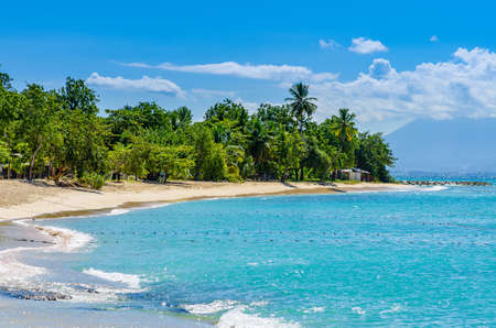 Dominican Republic tropical beach resort. Seashore. Palm tree. Samana
