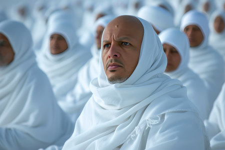 Devout Pilgrims in Traditional Ihram Attire